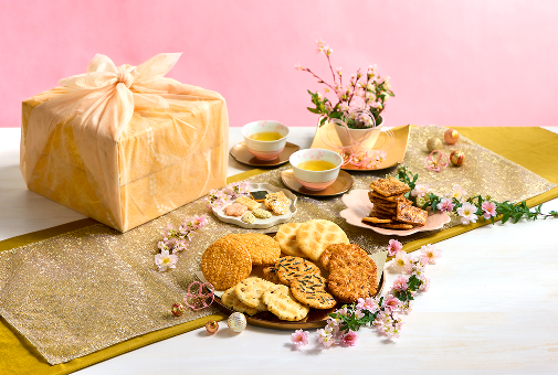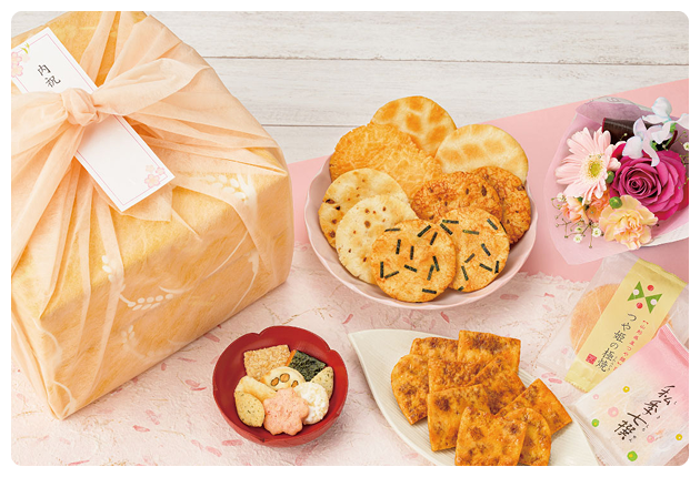 姪の中学入学祝の品と一緒に渡しました。春らしいおせんべい、ありそうでなかったきがします。