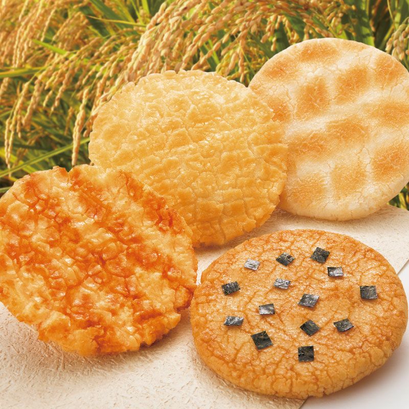 もちもち食感の「つや姫」は焼きせんべいに最適です。煎餅の断面はきめ細やかで、くちどけが良くなります。つや姫の旨みと塩、香ばしい海苔醤油の味わいと相性抜群。ぜひご堪能下さい。